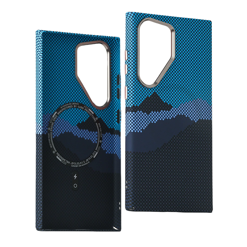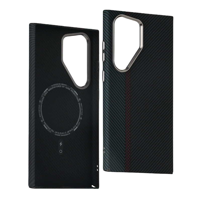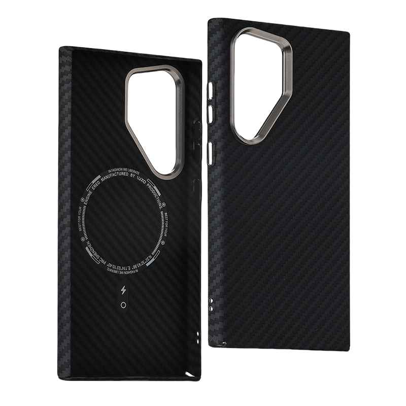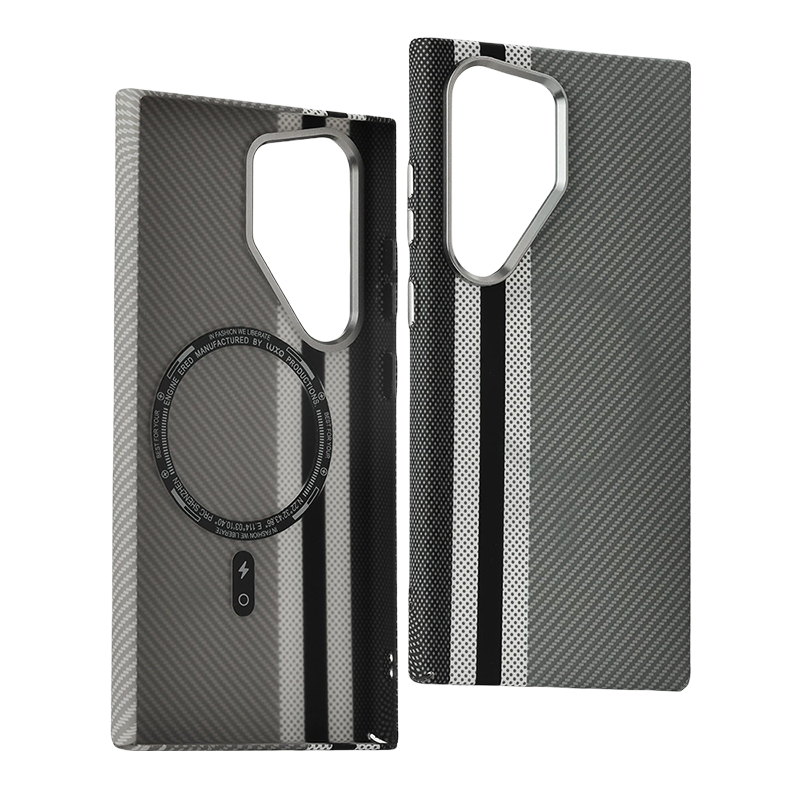 Fine-grain Kevlar texture with a full-wrap water transfer finish — stylish, lightweight, and protective.
